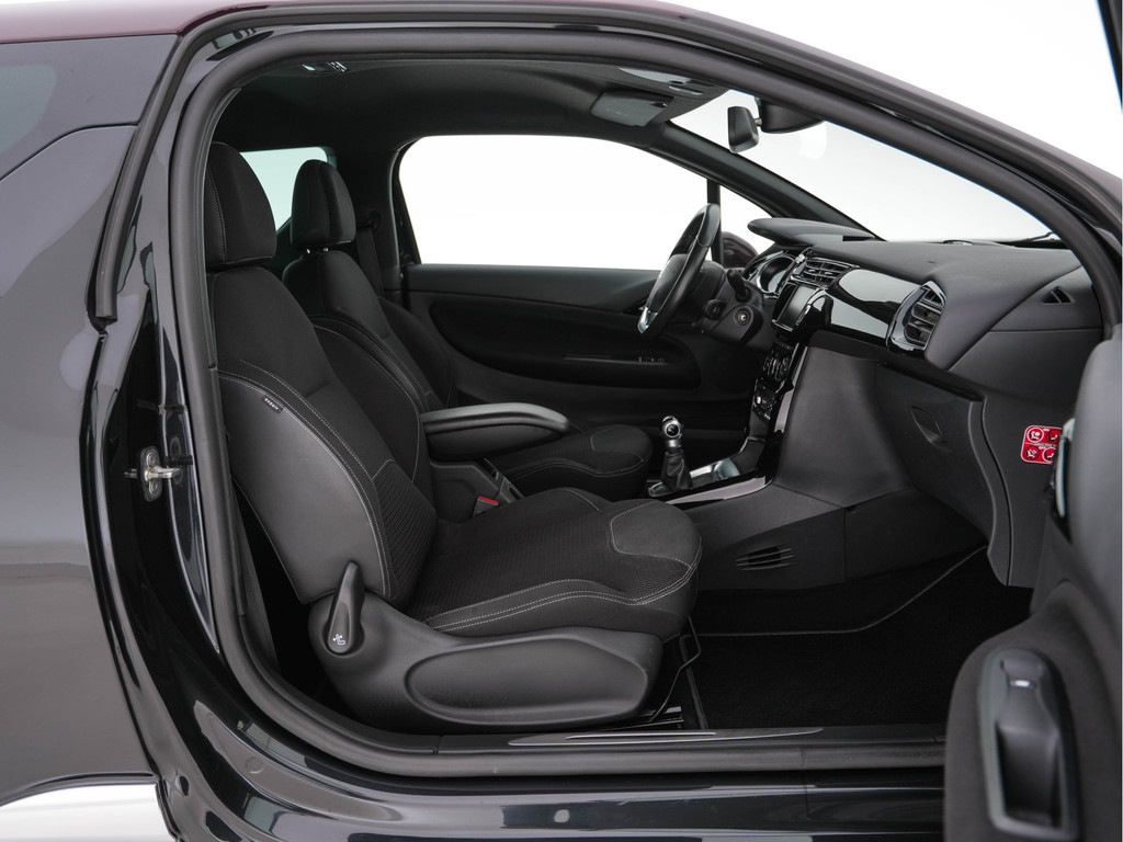 Stap in deze prachtige Citroën DS3 in de chique kleur Obsidian Black met een opvallend Rouge Carmen dak. De perfecte combinatie van sportiviteit en elegantie, uitgerust met een complete uitrusting die jouw rijervaring onvergetelijk maakt.