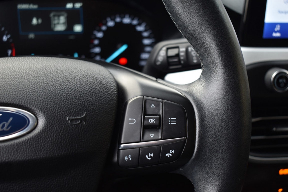 Deze Ford Focus betreft Business uitvoering met een 125pk sterke EcoBoost HYBRIDE (MHEV) benzine motor en is compleet met vele opties en extra`s o.a.: Origineel Ford Sync navigatie/multimedia/bluetooth/internet, Apple Carplay, comfort stoelen, stoelverwarming, stuurwielverwarming, parkeer sensoren voor en achter met parkeercamera en parkeerhulp, Lane-assist, cruise-control, multifunctioneel leder stuurwiel, LED verlichting met LED koplampen, lichtmetalen velgen, etc...
