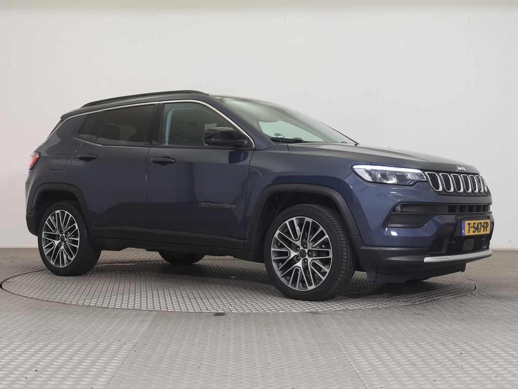 JEEP COMPASS 1.5T 131pk Automaat e-Hybrid Limited ECC ACP+NAVI LED 1/2ZWART/GRIJS.LEDER D.GLAS PDC 19\'\'T.T.