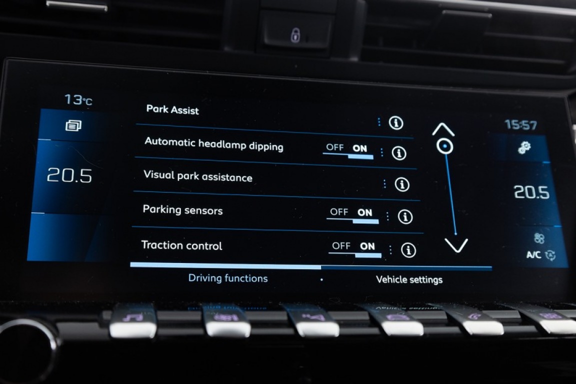 Achteruit rij camera, Audiosysteem, Bumpers in kleur, Centrale deurvergrendeling, Cruise control, ESP, Lederen bekleding, Lichtmetalen velgen, Navigatiesysteem, Park control achter, Skiluik, Spraakbediening, Start en Stop systeem, Touchscreen, Verwarmde achterruit