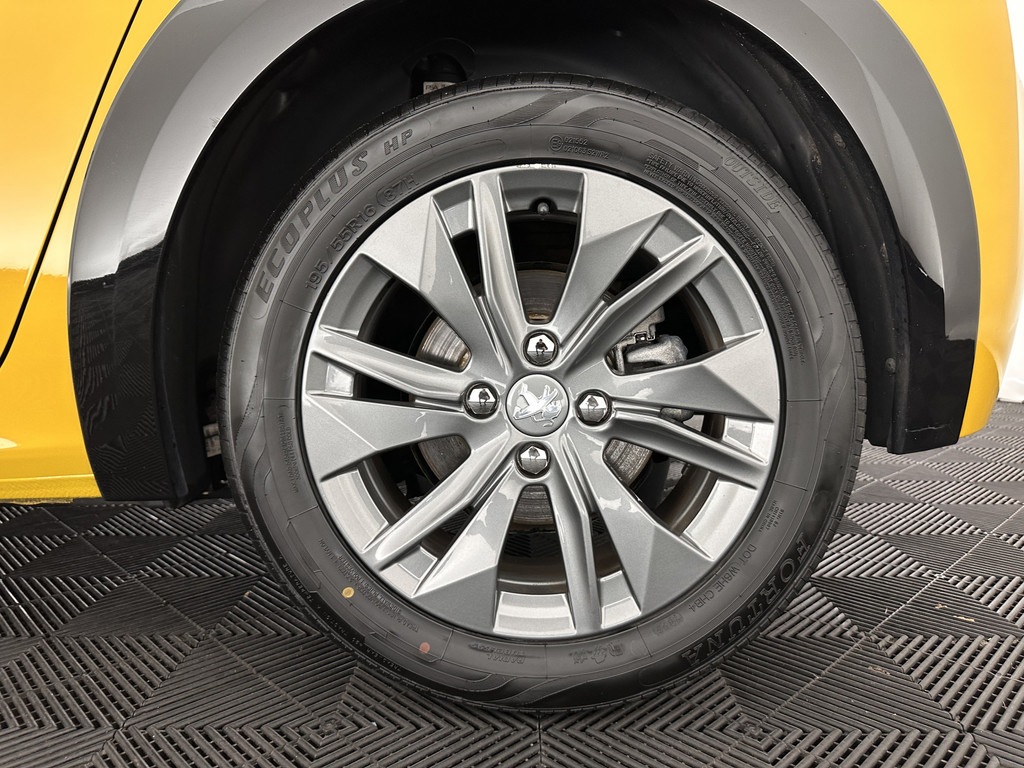 ⭐ Peugeot e-208 EV Allure Pack 50 kWh [ 3-Fase-11kW ] {SOH-89%} in Jaune Faro Metallic met stof/vegan-leder \"Cozy\" in zwart | Compact, Elektrisch & Stijlvol