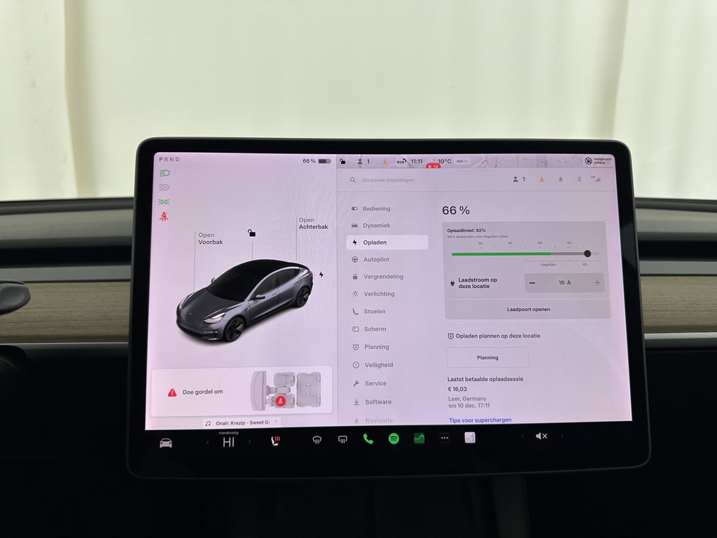 Accu laden: Type 2, 3-fasen, 16.5 kW, 126 km actieradius per uur, compleet vol in 4 uur en 33 minuten