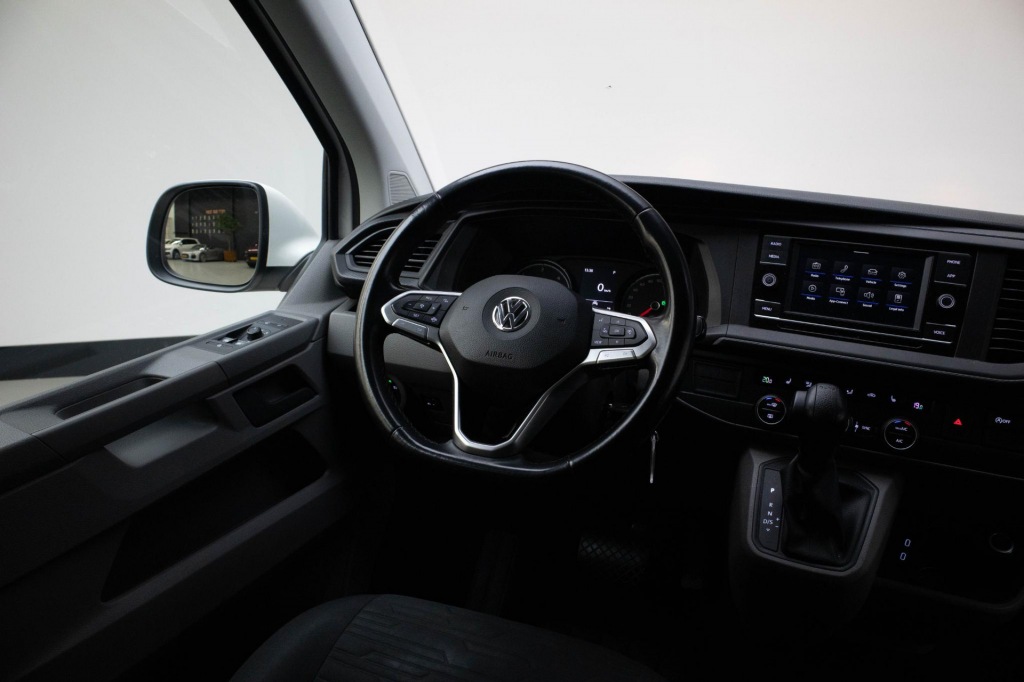 Adaptive cruise control is een comfortabele en veilige optie. Het systeem reguleert de snelheid en houdt automatisch afstand tot jouw voorligger. Deze Volkswagen Transporter Caravelle is 'connected'. Belangrijke functies worden permanent gemeten en zijn uit te lezen via een speciale app, ook op afstand. Jij kunt tijdens de rit jouw ogen steeds op de weg houden, want het audiosysteem (met dab!) kun je bedienen vanaf het stuur. Geen parkeervak is te klein dankzij de assistentie van de parkeersensoren. Natuurlijk is een complete auto als deze ook voorzien van sensoren die de omgeving in de gaten houden. Deze Volkswagen heeft niet alleen een automatisch inschakelbare verlichting aan boord, maar ook een regensensor. En deze auto heeft ook airconditioning, automatisch dimmende binnenspiegel, lederen stuur, centrale deurvergrendeling met afstandsbediening en boordcomputer als standaard uitrusting.